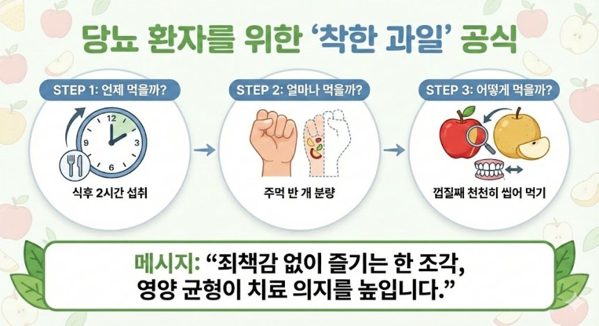 당뇨 5년 차 주부 이모(56) 씨는 요즘 마트 과일 코너를 지날 때마다 죄인이 된 기분입니다. 유튜브를 켜면 ‘과일은 설탕 덩어리다’, ‘당뇨 환자에겐 독약이다’라는 썸네일이 공포 영화처럼 쏟아지기 때문이죠. 믹스커피도 끊고 떡도 끊었는데, 삶의 유일한 낙인 제철 과일마저 뺏겨버린 기분. 정말 과일은 당뇨 환자가 절대 넘지 말아야 할 선일까요?
